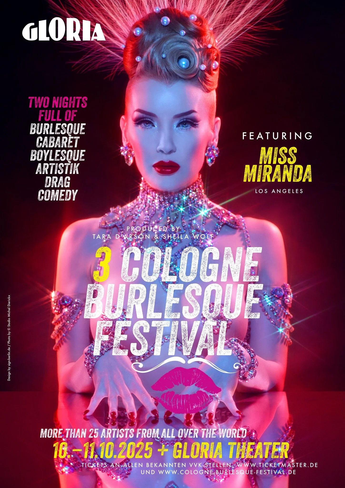 Miss Miranda will be making her Germany performance debut this fall headlining Sheila Wolf’s Vaudeville Variety Review at the historic Wintergarten theatre in Berlin, followed by star appearances at the Frankfurt Burlesque Festival and Cologne Burlesque Festival.