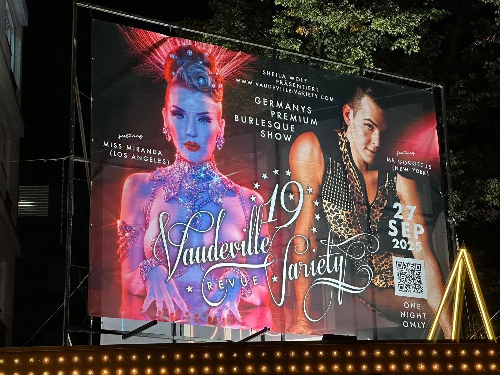 Miss Miranda made her Germany performance debut headlining Sheila Wolf’s Vaudeville Variety Review at the historic Berlin Wintergarten theatre, followed by star appearances at the Frankfurt Burlesque Festival and Cologne Burlesque festival produced by Sheila Wolf and Tara D’Arson.